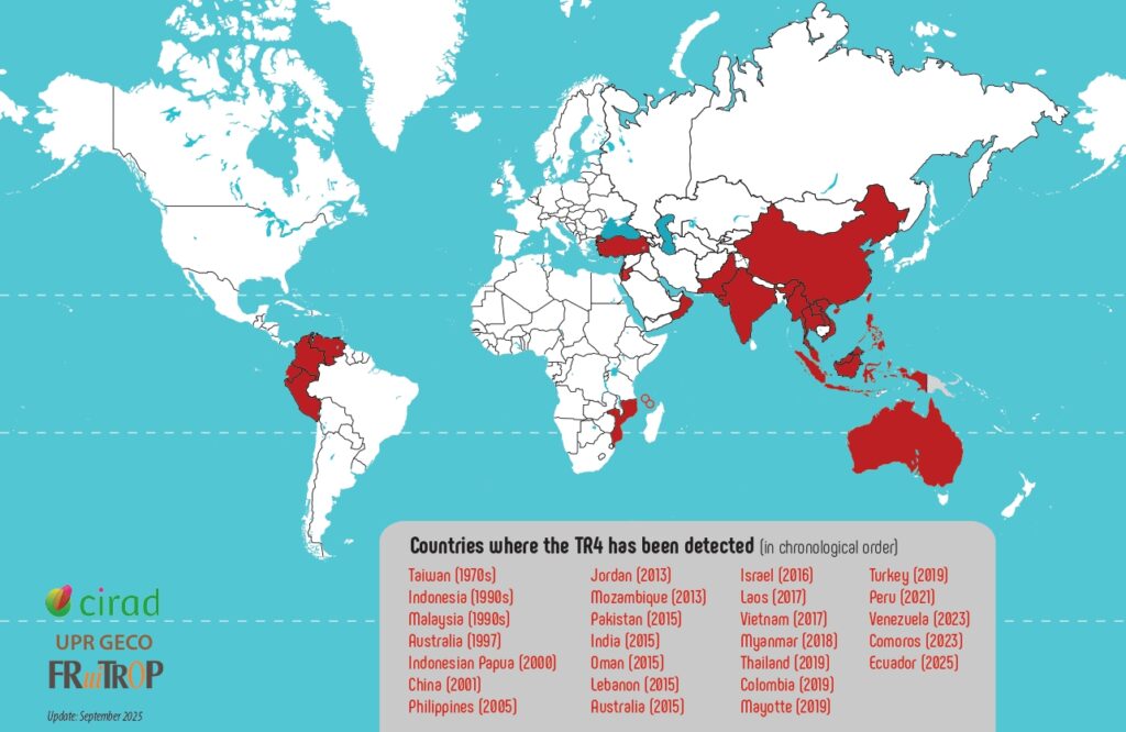 La fusariose TR4 a été confirmée pour la première fois en Équateur, malgré sa présence déjà connue dans les pays voisins (Colombie et Pérou).