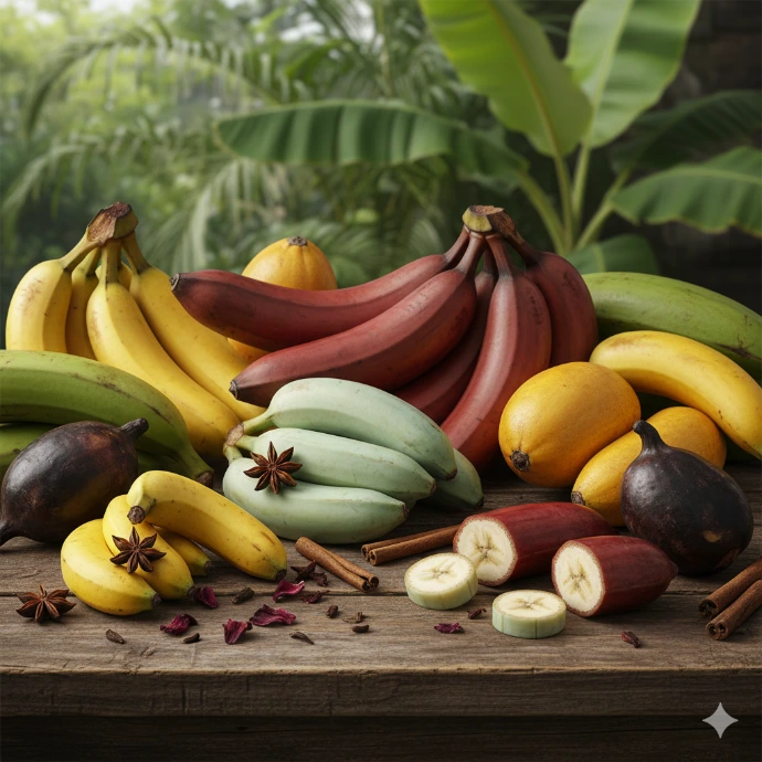 Au-delà des variétés classiques, l'univers des bananes de spécialité offre une palette de saveurs et de couleurs étonnante, allant de la petite Frécinette très sucrée à la banane rouge au subtil parfum de framboise.