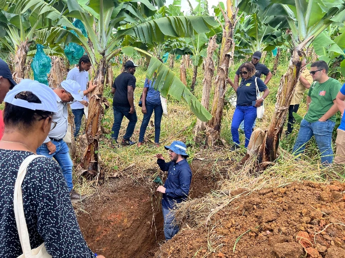 En banane, l’IT2 s’appuie sur une plateforme de sélection participative unique, issue du Plan Banane Durable, réunissant chercheurs,
