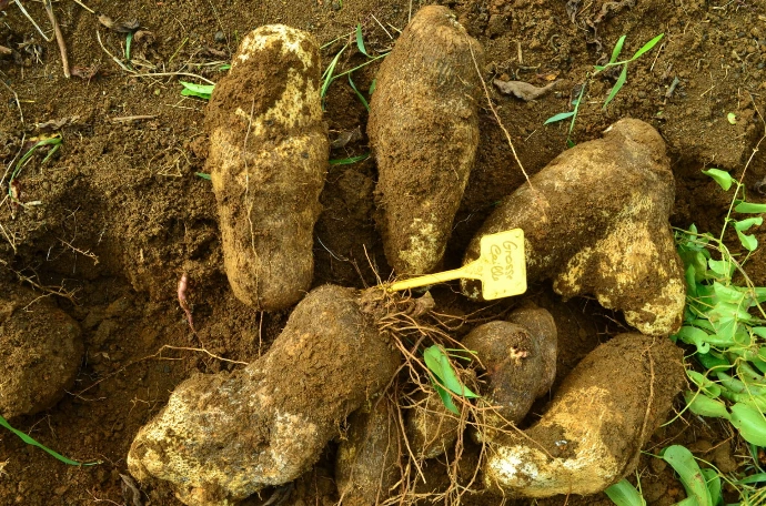 Les tubercules plantés sont des ignames blanches de type Alata et Rotundata et des ignames jaunes de type Cayenensis, toutes considérées comme performantes et adaptées aux besoins du territoire.